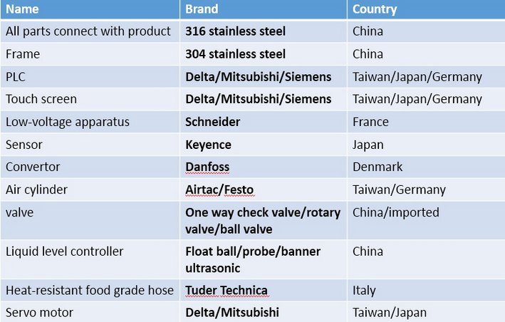 1. Materijal svih dijelova kroz koje proizvod teče može se opremiti prema karakteru proizvoda, tako da su materijali idealni za popunjavanje većine proizvoda od jake korozije.